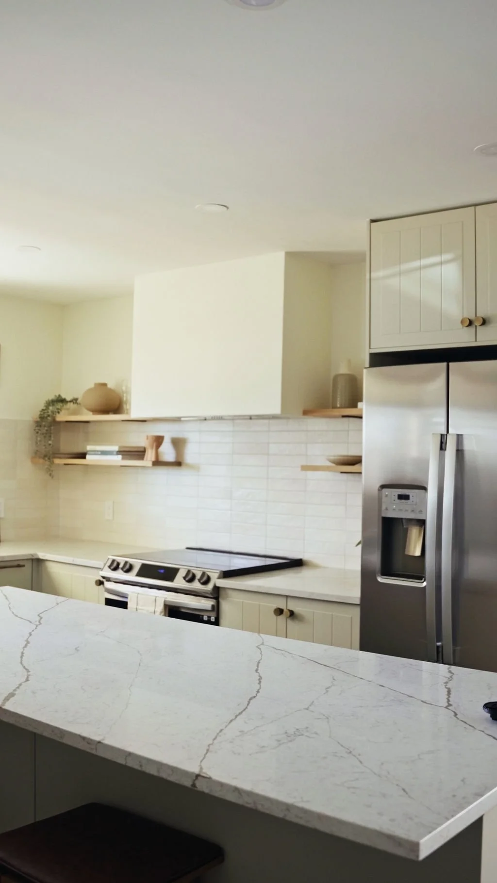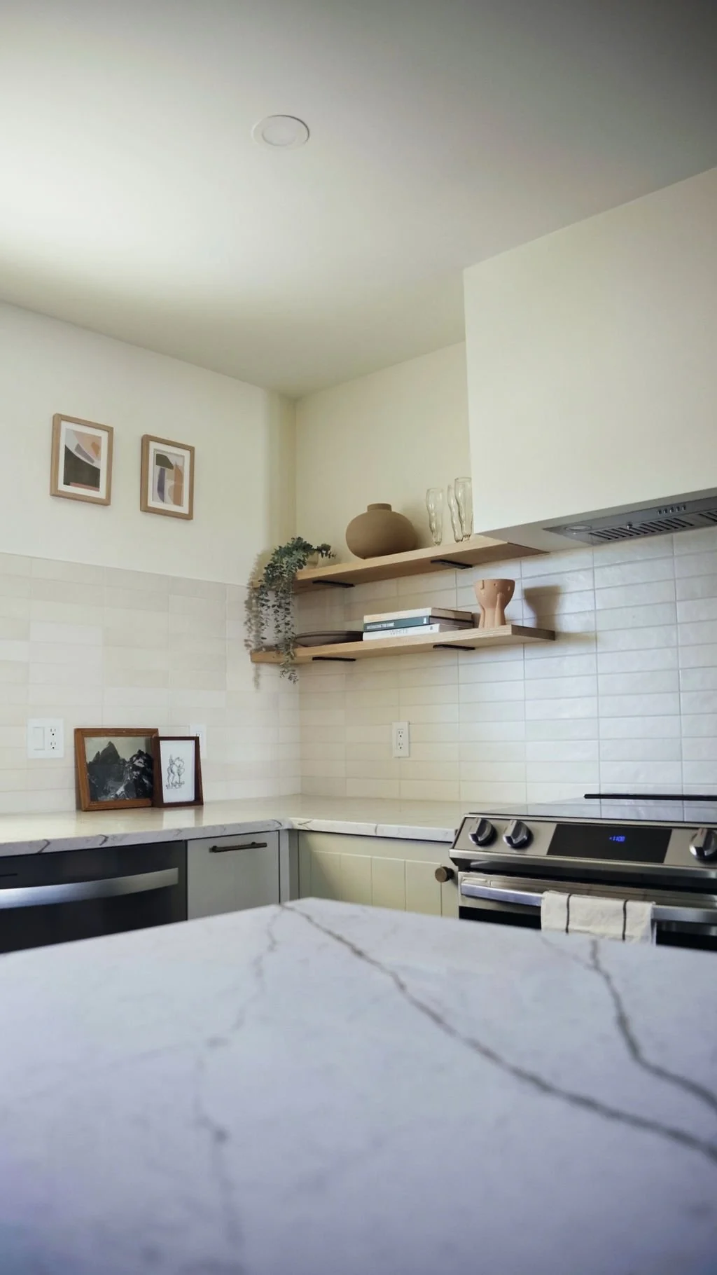 This kitchen renovation in Arvada, Colorado, features a stunning neutral color palette that creates a serene, timeless atmosphere. The design opens up the space by removing a wall, allowing for a more expansive and airy layout. Open shelving adds both style and function, offering easy access to kitchen essentials while enhancing the modern aesthetic. The overall open design promotes flow and connectivity, making the kitchen a perfect blend of beauty and practicality. With a clean, fresh look and a focus on simplicity, this renovation transforms the kitchen into a bright, welcoming space for cooking and entertaining.